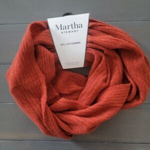 MARTHA STEWART 100% Cashmere Cable Knit Infinity Scarf in Heather rust
