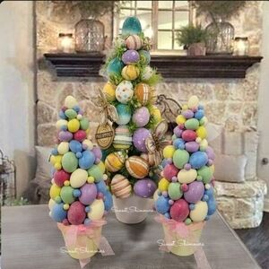 This listing is for 1 BRAND NEW Martha Stewart Spring Easter egg Potted Topiary Tree Centerpiece Decorative 16"H in clay pot. **This is Brand New, without the tags, I took the tags off in the store to photograph them and left the tags behind.***One of the eggs, on the side towards the back has a small indentation on it from the manufacturer (see pics) its not broken and they glazed and glittered over it along with the rest of the tree. You can't see it looking at it from the front where the bow is. So it doesn't distract from its beauty. Thanks for looking!