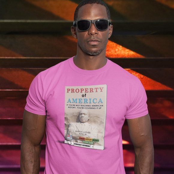 Property of America, specialize in Political & Social Justice messaging products for Dems, so they can wear their movement for the 2022 Midterms. We are launching our collection of products, "DEMOCRACY DEFENDERS" IN our fight to SAVE OUR DEMOCRACY! Our latest design " MARTIN LUTHER KING JR./BLACK HISTORY MONTH BOOK CLUB/Democracy Defenders, is about a need to let young people know, that they're making HISTORY everyday when they Stand Up For Justice! We need DEMOCRACY DEFENDERS, for all American's to Vote, and in the WORKPLACE! We the People, will Save Our Democracy! Portions of our sales will fund our Merchandise Fundraising Campaign, to reinvest in Black and Disadvantaged Communities, as part of our 1 BUILDING PROJECT. Portions of our sales will fund our Merchandise Fundraising Campaign, to reinvest in Black and Disadvantaged Communities, as part of our 1 BUILDING PROJECT. Thx Dex