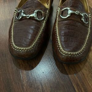 MARTIN DINGMAN Brown Leather Loafers with Silver Detailing SIZE 11.5