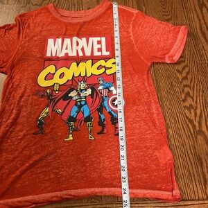 MARVEL COMIC juniors T shirt red with superheroes front very lightweight soft Sm