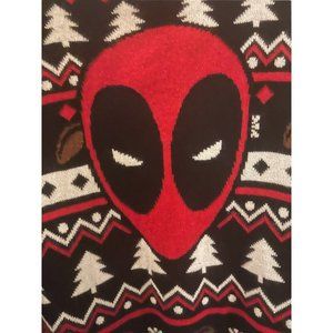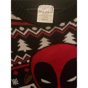 MARVEL Deadpool Sweater Crew Neck Christmas Holiday Red Black White Mens Size XL