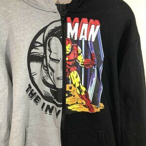 MARVEL Iron Man The Invincible Split Zip Up Graphic Hoodie Jacket Sz M
