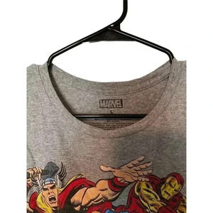MARVEL SIZE LARGE SUPER HERO ON GRAY SHIRT