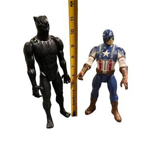 Excellent condition. Marvel Action Figure Lot Black Panther & Captain America stands by themselves, very realistic details, ideal for collectors They are preloved and they have minors flaws.