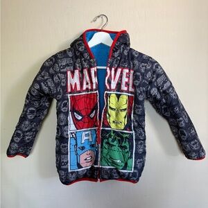 MARVEL Sherpa Reversible Jacket Coat Blue Hooded Boys Size 6 Hulk Spider-Man
