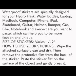 Waterproof stickers meant to go on most surfaces.