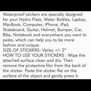 Waterproof stickers meant to go on most surfaces.