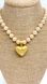 MARVELLA PEARL NECKLACE W/ GOLD TONE HEART ENHANCER PENDANT RHINESTONE VINTAGE