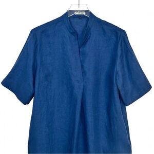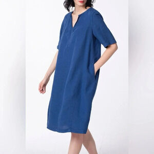 MARVIN BROWNE Spitalfields Oversized Navy Blue Linen Shift Dress Pockets L