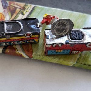 MARX Toy 1949 Louis Marx Mot-O-Run Express Hi-Way Works Race Car Track Old Style. Runs but the cord is frayed and will need replacing comes with 2 vehicles and a figure. A yellow coach bus and a sunlight bakery truck. Please see photos for details