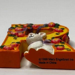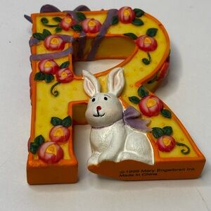 Cute hand painted letter R. It has a rabbit, ribbon and flowers. Dated 1999. Retired collectible. Excellent condition