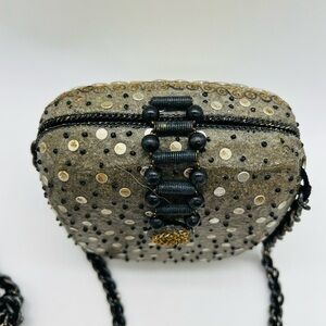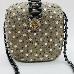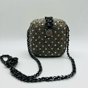 MARY FRANCES UNIQUE SHOULDER BAG WITH CHAIN STRAP AND LOTS OF METAL ADORNED