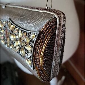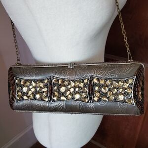 MARY FRANCIS beaded purse vintage embossed shell bag with chain strap