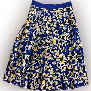 Bold A-line skirt with striking blue and yellow pattern. Perfect for adding flair to your outfit.