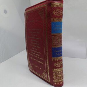 The Mary Poppins Red Book Wallet Wristlet is a stylish and secure accessory for women who appreciate novelty and Mary Poppins! Made of faux leather and vinyl in a vibrant red color, this wallet features a wristlet style with RFID secure technology. It has a compact size of 7 x 7 inches, making it perfect for on-the-go use. Complete with a tag, this unique wallet is a must-have for those who want to add a touch of whimsy to their everyday look.