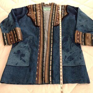 MARY REYNOLDS DESIGN Jacket M/L Blue Textured Denim Western Open Duster Tassel