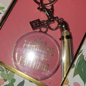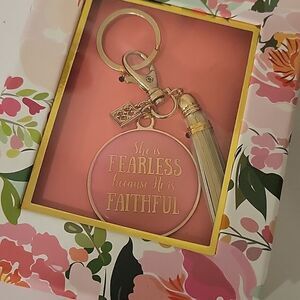 MARY SQUARE She Is Fearless Because He Is Faithful Keychain NWT Pink