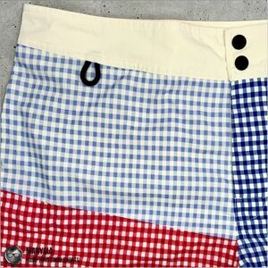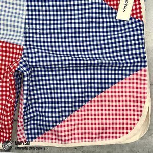 MARYSIA MEN’S HAMPTONS SWIM SHORTS IN RED & BLUE GINGHAM PATCHWORK MADRAS TRUNKS