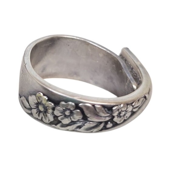 Elegant and timeless, this M.A. Rogers Oneida silver ring showcases a beautifully detailed floral design, inspired by vintage flatware artistry.
