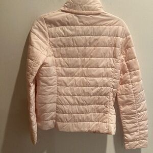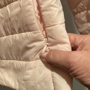 Light pink. Pit. 18 chest. 18, length 23” zippered pockets
