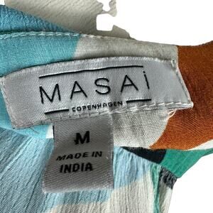 Colorful tropical print blouse from Masai Darnell in size medium. Minor wear on the notch of the v-neck, otherwise great used condition.