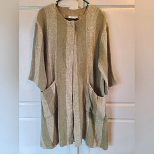 MASAI Janette Sage Green Boucle Jacket Stripe Pockets Long Cardigan