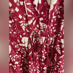 MASALA Burgundy butterfly sleeve Bohemian floral dress with draw string waist. Sz XL New with Tags. Measurement of bust is laying flat but because of the crossover it allows for some more space