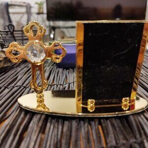 MASCOT NWOT 24K GOLD PLATED CROSS PICTURE FRAME W/CLEAR SWAROVSKI CRYSTAL