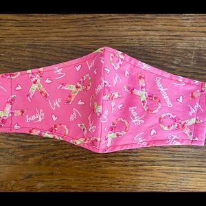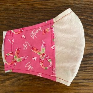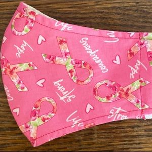 Pretty pink mask with colorful pink ribbon and words of encouragement print