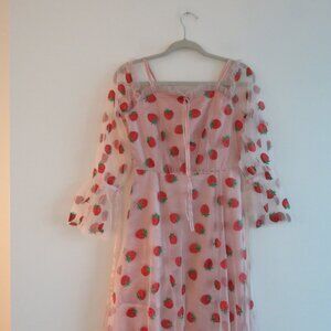 MASKED QUEEN COTTAGECORE Strawberry Tulle Midi Dress Coquette Whimsy Retro NWT