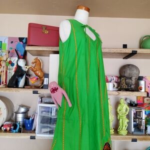 MASKIT RARE Israeli Vibrant Green Maxi Dress Sz M