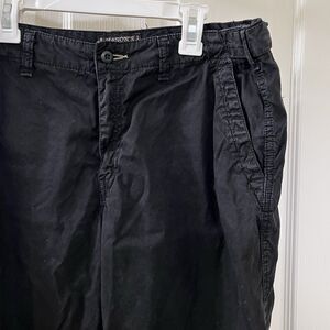 MASON'S Woman Rites Black Cropped Cargo Pants Made in Italy Cotton Woman's Size 48 US 12. Cropped and have cargo pockets along the legs. Have been worn and washed and are very wrinkled and have wash wear and fade. Please see the pictures. Still have a ton of life left, but are not perfect.