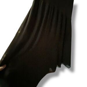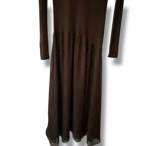 Expertly crafted with a high neck and ruffled detail, this knit midi dress exudes sophistication. With long sleeves, ribbed knit top and a Flowy sheer lined bottom it provides both style and warmth. Lined bottom for added comfort, this dress is a must-have for any fashionable wardrobe