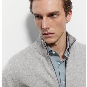 MASSIMO DUTTI GRAY WOOL/CASHMERE ZIP CARDIGAN XL