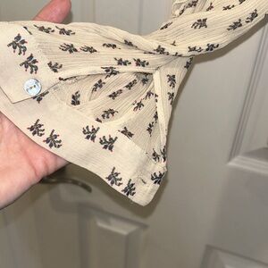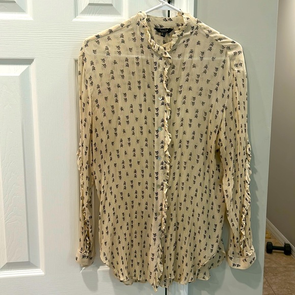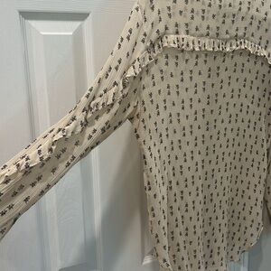 MASSIMO DUTTI Ivory Black Print Dress Shirt Blouse Button Down Ruffle Blouse L