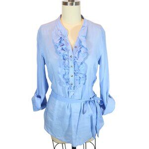 MASSIMO DUTTI Ruffle Front Belted Blouse Top Size 40/10 US Light Blue Feminine