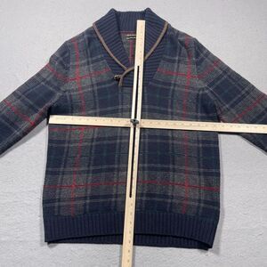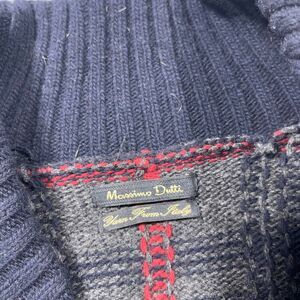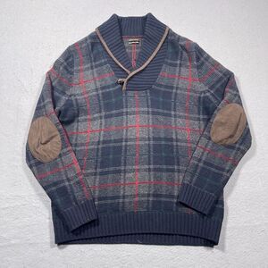 MASSIMO DUTTI Sweater Elbow Pads‎ XL Plaid Wool Cashmere Cowl Neck Blue