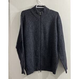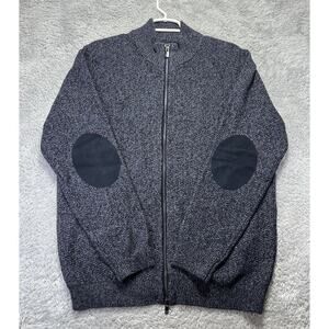 MASSIMO DUTTI Wool Cotton Zip High Neck Cardigan Jumper Sweater Elbow Blue XL