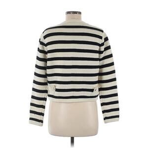 MASSIMO DUTTI striped knit cardigan Stripe gold buttons Black White CREAM M