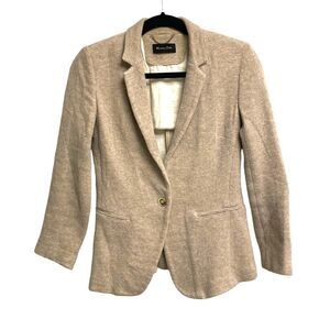 MASSIMO DUTTI Cotton Alpaca Wool Single Button Front Knit Blazer Jacket Tan XS