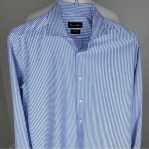 MASSIMO Dutti Men’s Italian Easy Iron Button Dress Shirt 44 17.5 Blue Stripe