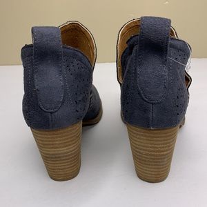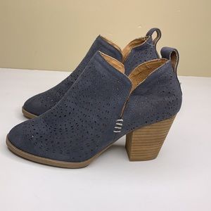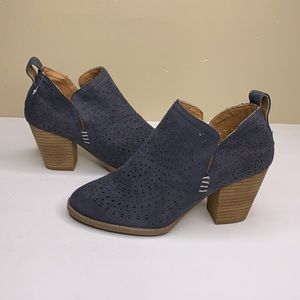 MASSINI Bootie Blue Perforated Faux Suede “DIAMOND” Block Heel Almond Toe 8.5M