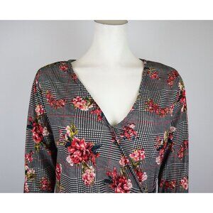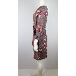 MASSINI - WOMEN'S BLACK PLAID FLORAL PRINT STRETCH KNIT FAUX WRAP DRESS - SIZE S