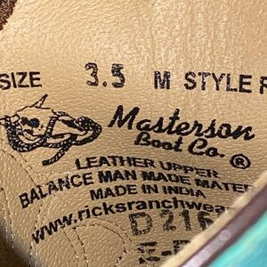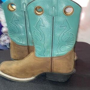 MASTERSON BOOT COMPANY GIRLS SIZE 3.5 LEATHER COWGIRL BOOTS TEAL UPPER EUC CLEAN