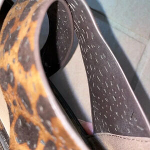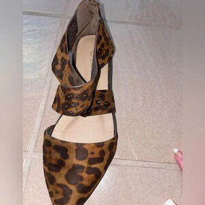 Point toe animal print black and brown cross cross strap zip back flsts.