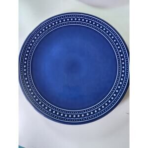 MATCERAMICA Dark Blue Embossed Dot Band 10.75" Dinner Plates Set of 2