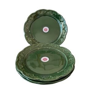 Bring festive elegance to your holiday table with this set of four 11-inch made in Portugal green dinner plates. Featuring a beautiful embossed edge design, these plates are crafted with quality and style, perfect for adding a touch of sophistication to your holiday gatherings. Whether you're hosting Christmas dinner or looking to enhance your seasonal decor, these new Portugal-made plates are a timeless addition. Ideal for collectors or anyone seeking premium dinnerware, this set is ready to elevate any table setting.