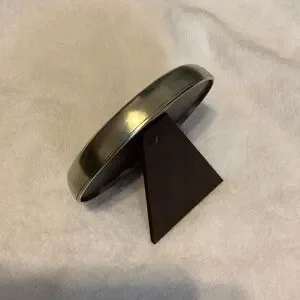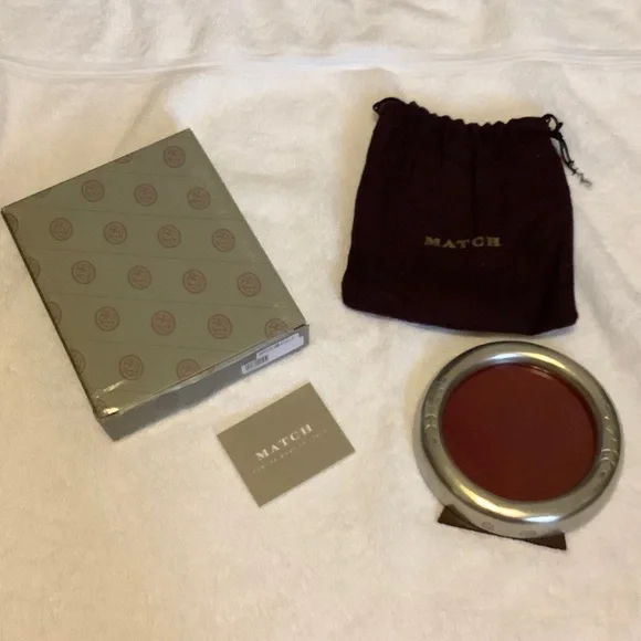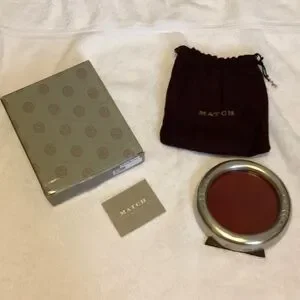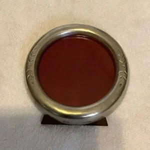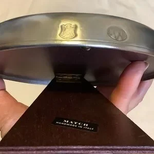 Beautiful New MATCH picture frame with bag and box. Circular glass frame with leaf pattern on frame. Handmade by artisans in Northern Italy.