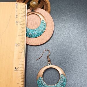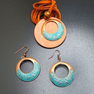 MATCHING set of bronze seashell earrings and necklace boho turquoise